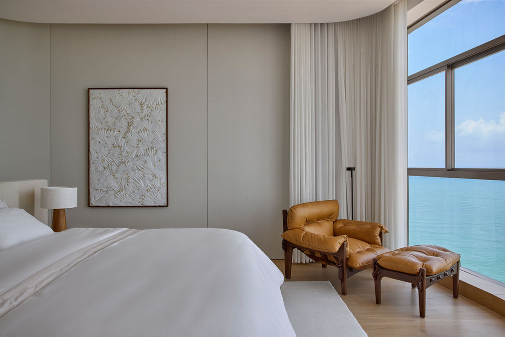 Com vista para a praia de Boa Viagem, em Recife, o projeto de interiores, assinado pela Architects Office, convida a paisagem a adentrar o apartamento ao capturar a vastidão do horizonte. Um conceito que desenha o “infinito” de fora para dentro, absorvendo a amplitude do mar e do céu. A arquitetura nasce, assim, de um processo que escuta, investiga e materializa, revelando formas que concretizam, além de ambientes construídos, modos de habitar e de coexistir com o entorno.