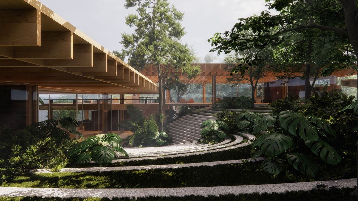 Protagonista do projeto, a natureza dita os materiais utilizados desde a estruturação até o paisagismo: os ambientes foram pensados a partir de elementos centrais em madeira e pedras, além da presença de corpos d’água que traduzem a fluidez do rio. As soluções arquitetônicas proporcionam uma atmosfera de convivência que equilibra funcionalidade, acessibilidade e tranquilidade, ao mesmo tempo que conservam a mata nativa do entorno.